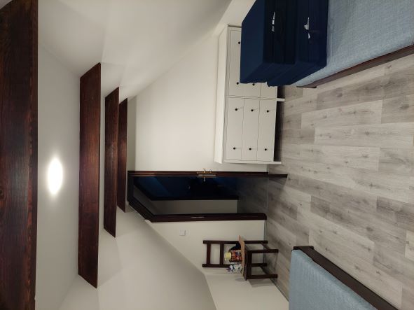 Kompletní rekonstrukce půdního prostoru - zpevnění konstrukce podlahy, osazení OSB deskami, tepelná izolace, parozábrana, kompletní konstrukce a opláštění SDK (protipožární, akustické s ActiveAir systémem), vytvoření nových vchodových příček a osazení zárubní a dveří, rozvod topení a elektroinstalace.