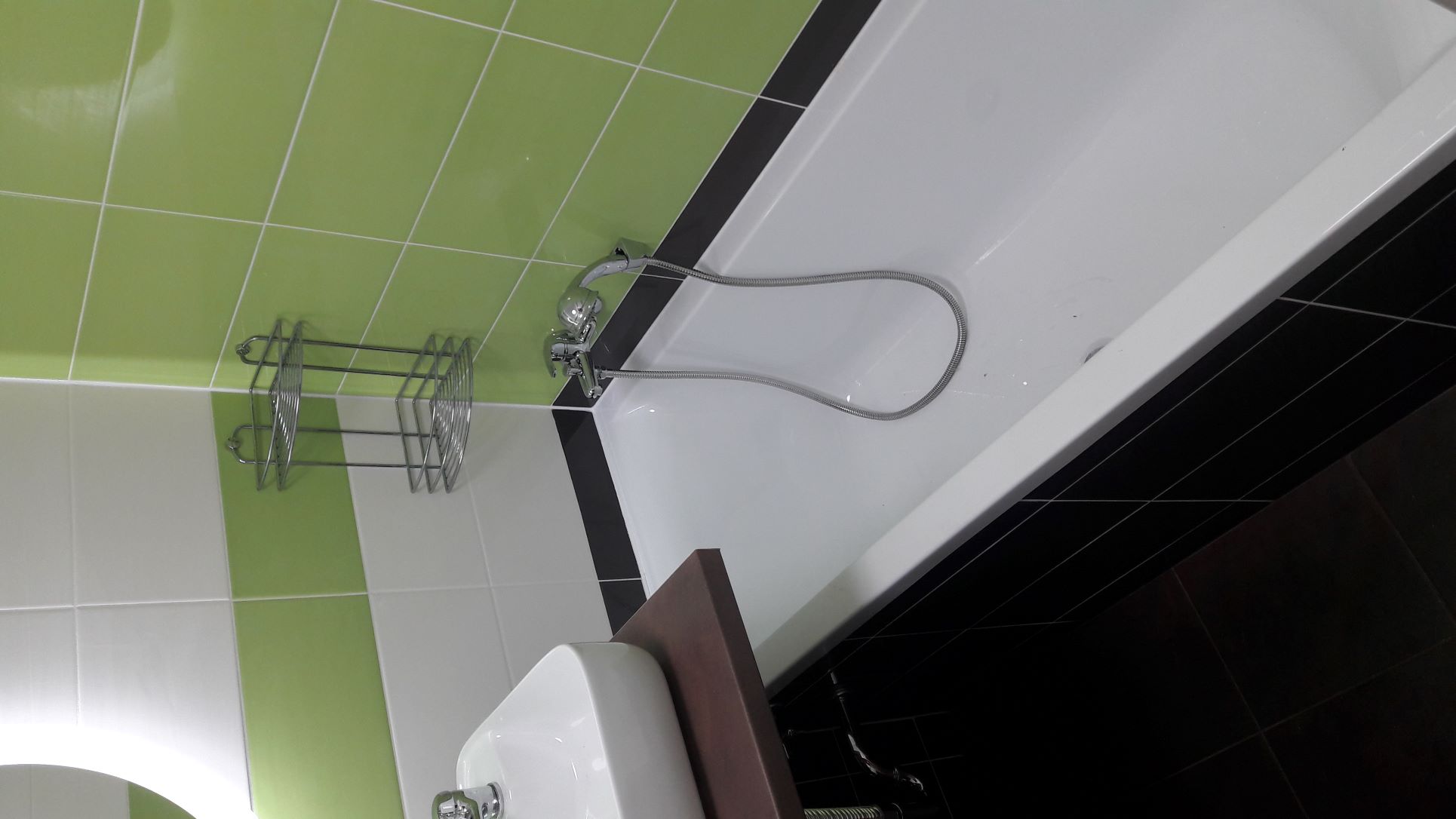 Obsah: úprava a zpevnění umakartového jádra, zesílení stěny v předsíni pro obložkové dveře, obklady stěn, podlaha, strop, rozvody vodoinstalací a elektro, instalace vany Laguna Cube Way 160cm, baterie se sprchou, deska s umyvadlem a baterií, zrcadlo s LED podsvícením, WC kombi Jika Neo, obložkové zárubně s dveřmi