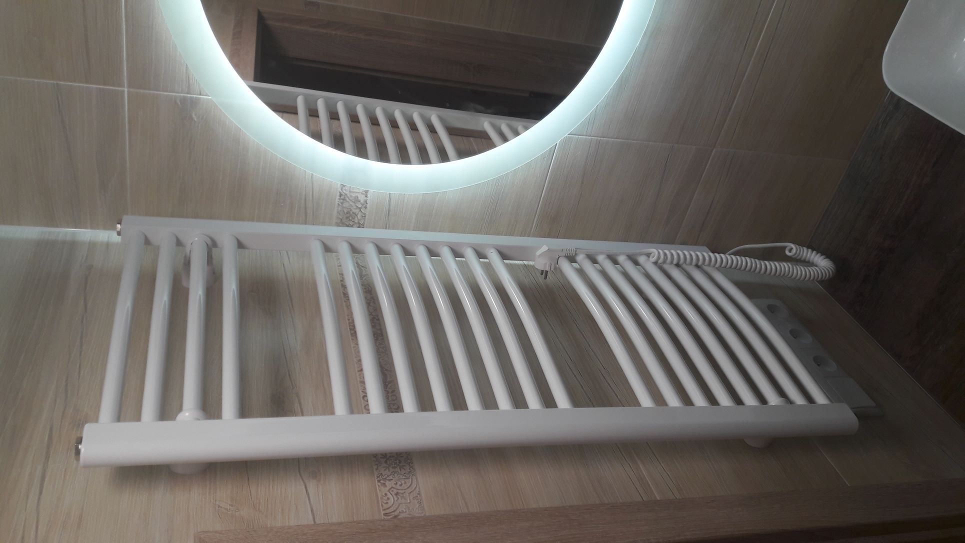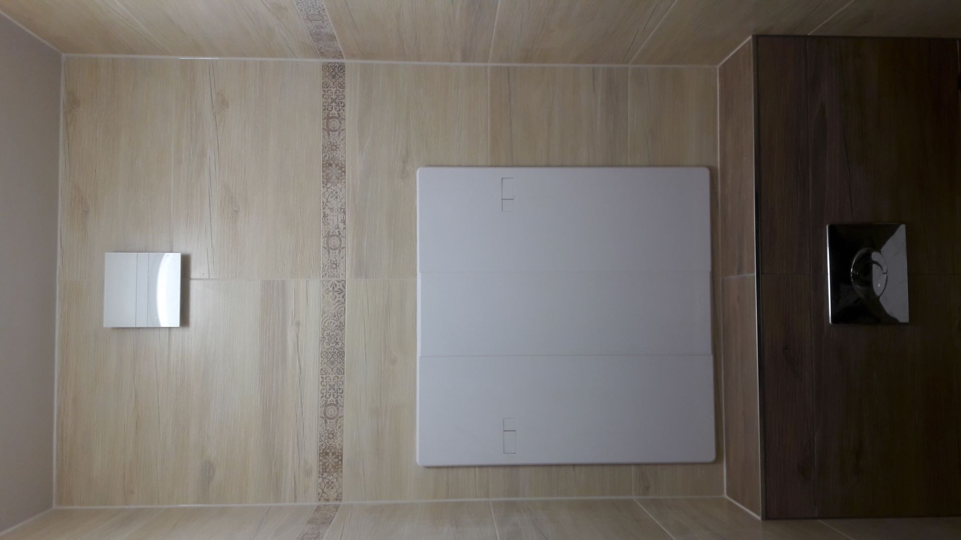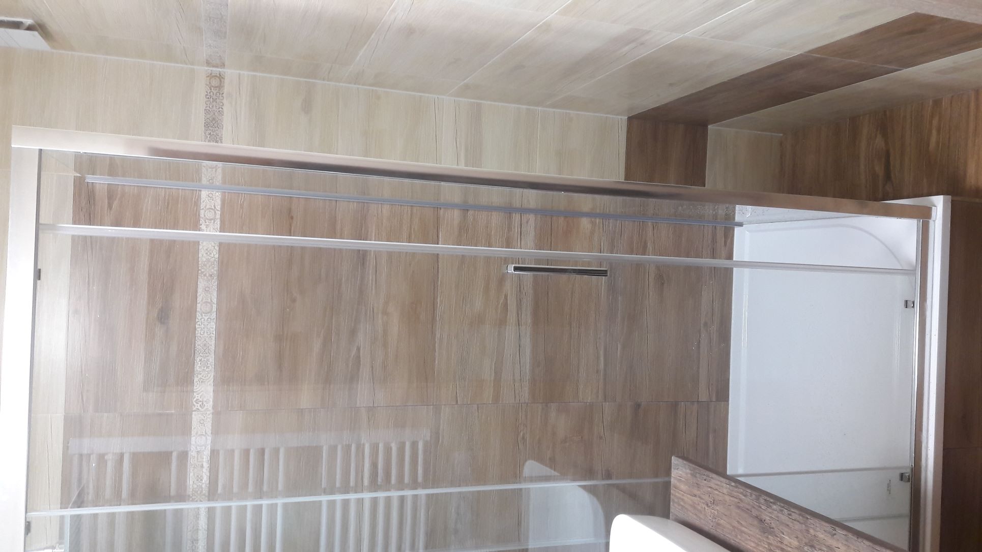 Obsah: vybourání umakartového jádra, nové jádro z Ytongu, štukování stěny, obklady stěn, podlaha, stropy s LED svítidlem, rozvody vodoinstalací a elektro, instalace sprchového koutu 120x80 s bezpečnostním sklem, baterie se sprchovým setem - déšť, umyvadlo s baterií na desku, zapuštěná pračka pod desku, zrcadlo s LED podsvícením, el.radiátor - žebřík, závěsné WC Jika Lyra, aktivní ventilátory, instalace obložkových zárubní a dveří